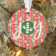Características de design nosso design dos enfeites de natal da ALEGRIA da quiroterapia em um fundo listrado festivo do feriado.