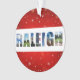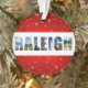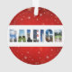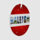 Mostre seu amor pela cidade de Raleigh, Carolina do Norte nesta temporada de festas com este Enfeites de natal festivo! A colagem de cores mostra fotos do Capitólio, da Torre de Celulares do Estado NC, do campo de golfe Lonnie Poole e outras visões do centro.