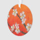 Branqueamento branco em primavera, Reprodução da pintura original de Julia Doria. Pintura acrílica no papel. Ramificações das árvores de fruta florescentes em fundo laranja.