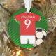 Um presente de excelente para qualquer estrela do futebol, fã do esporte ou adepto do futebol, que apresente uma camisola de futebol vermelha e branca com o seu nome e número, com um fundo de futebol e um campo de futebol moderno verde.