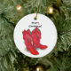 Para o amante de botas em sua vida, um ornamento de excelente para o Natal. Para todas as minhas pinturas de aquarela originais no compro, uso a "paleta limitada". Vermelho, amarelo, azul. Isto produz todos os tons e matizes que vocês veem nas minhas pinturas. A aquarela vermelha, amarela e azul transparente em tons quentes e legal pode ser misturada para obter qualquer cor no espectro. Penso que há mais controlo sobre os resultados finais. Meu trabalho de arte cobrir uma grande variedade de assuntos. Eu pinto uma arte caprichosamente humorada, do tipo "um de um" a uma arte séria de belas artes. No entanto, minha paixão é pintar retratos de animais e pessoas. Adoro capturar a emoção do momento. Ambos os sujeitos têm suas próprias personalidades. Isto torna o resultado final muito desafiador e gratificante. Meu meio primário é aquarela. Mas também trabalho com grafite, caneta e tinta. Ligações diretas ao meu compro: http://www.zazzle.com/Nanwright?rf=238428852843633817 OU https://www.zazzle.com/nanwright