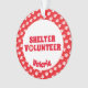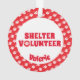 Este ornamento exibe uma borda vermelha com impressões de pata branca. O texto diz "SHELTER VOLUNTEER". O O em voluntário é substituído por uma impressão de pata bonita.