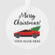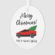 Red Tesla pickup truck with Christmas tree Ceramic Ornament . Modern version of old vintage Chevy truck hauling a Christmas tree. Personalized gift for the holidays. Upload your own photo on the back optionally.