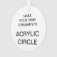 O costume imprimiu o modelo ACRÍLICO REDONDO personalizado do vazio da DECORAÇÃO do ORNAMENTO da ÁRVORE de NATAL do CÍRCULO - 3,46" altamente x 3,14" largamente x 0,187" densamente. O design, cria, faz seus próprios. Sua foto, imagem, texto, logotipo, gráficos no impressão de cor completa em ambos lado do ornamento, usando o processo de impressão de AcryliPrint®HD. Feito do acrílico ultra-durável.