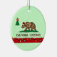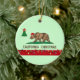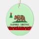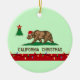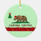 É o clássico, engraçado, ornamento da árvore de Natal de Califórnia! Caracterizando a bandeira do estado da república de Califórnia com luzes de Natal no bloco vermelho, em um chapéu do papai noel no urso de Brown, em uma árvore de Natal com a estrela, e nas palavras, de "Natal Califórnia". Escolha este design em muitos formas e tamanhos diferentes do ornamento, e a garra seu hoje… faz um grande presente do Natal para qualquer um!