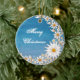 Enfeites de natal - lua crescente do céu nocturno azul nas margaridas com fresta de esperança