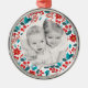 Este ornamento moderno e elegante do feriado da foto caracteriza uma bandeira floral decorativa. A paleta de cores é brilhante e festiva. Adicione uma imagem da família na parte dianteira e os nomes e o ano de família na parte traseira.