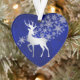 Este ornamento bonito de Férias apresenta uma imagem de rena prateada em frente a um spray de flocos de neve ornamentado prateada. A imagem é colocada sobre um fundo azul profundo gradiente. A parte de trás do ornamento tem o mesmo fundo azul e flocos de neve, e um campo de texto para você personalizar. Linda!