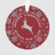 Uma rena reluzente cintilante de prata brilhante está no centro deste belo Enfeites de natal. Ele está rodeado de texto prateado que diz Feliz ano novo de Feliz Natal. Uma borda circular de flocos de neve com brilho prateado termina as bordas. Tudo é colocado sobre um fundo vermelho de Natal. O outro lado do ornamento tem a mesma imagem, mas com seu texto personalizado. Mude o ano para o seu nome, se quiser. *Observe que a imagem está impressa e não contém nenhuma falha real.*