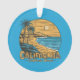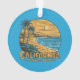 A vintage-style California beach scene featuring a warm orange sunset, blue ocean waves, and tropical palm trees inside a circular frame. The textured gold “California” lettering adds a classic retro feel, perfect for anyone who loves coastal vibes and iconic beach aesthetics. A stylish and relaxing design inspired by timeless West Coast scenery.