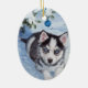 " Um Xmas de espera do filhote de cachorro ronco pequeno bonito sob uma prata & um azul adornated a árvore. Do "" azul do Natal do "", a pintura acrílica original de Morgane. Aperfeiçoe para todos os amantes dos animais."