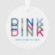 DINK! Este Enfeites de natal diz tudo! Este design chic com a palavra "dink" em blues, verdes e pinks celebra o esporte do piquete. Faz um presente maravilhoso para o amante de picleball em sua vida. Área de texto personalizada opcional disponível. Parte de uma coleção da Parcel Studios.