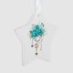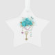 Chave de ouro antiga com rosas de turquesa de tendência, decoradas com folhas de ouro branco e miçangas cor-de-rosa e azuis. Cor agradável. Rosas de turquesa. Ouro branco. Tifania azul.