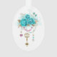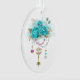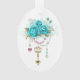 Chave de ouro antiga com rosas de turquesa de tendência, decoradas com folhas de ouro branco e miçangas cor-de-rosa e azuis. Cor agradável. Rosas de turquesa. Ouro branco. Tifania azul.