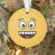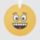 Um emoticon clássico com boca aberta mostrando dentes e olhos abertos.