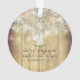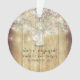 Somos um ornamento rústico noivado com jarro de mason, flores de hálito de bebê, luzes de cordas e textura de madeira de bar