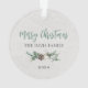 O elegante design de decoração redondo de "Feliz Natal" em acrílico apresenta um fundo de grãos de madeira branca rústico em forma de chic, com uma coroa de água de inverno, enquadrando um primeiro ou sobrenome de monograma inicial. Personalize a formulação moderna e na moda verde e cinza de carvão com a sua escolha de cumprimentos, sobrenomes e o ano.