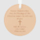A Virgem Abençoada Maria é mostrada adorando o bebê Jesus. Este ornamento acrílico é o presente perfeito de Natal para um parente de fé católica ou cristã. Personalize a mensagem e as saudações, conforme necessário.