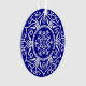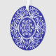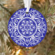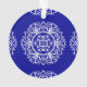 Esta mandala branca senta sobre um fundo azul brilhante e profundo. As cores são inteligentes e introspectivas. Parte da Coleção Rosenn Mandala.