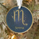 Escorpião, o símbolo do zodíaco dourado Escorpião flutuando num céu azul noturno com lua e estrelas personalizadas na frente com o nome da sua estrela favorita na galáxia. Uma brincadeira personalizada de Natal para alguém celebrando um aniversário sob o Sinal de Água de Scorpio - 23 de outubro a 21 de novembro. Adicione uma para todas as suas estrelas brilhantes para uma tradição de manutenção da árvore de Natal da família.