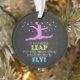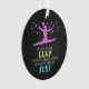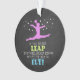Um ornamento inspirado da árvore de Natal da ginástica - com uma textura original do quadro - é a decoração perfeita para seu gymnast esta época natalícia! Caracteriza um médio-pulo do gymnast entre as estrelas. O texto lê, "se você nunca pula, você nunca saberá o que é como voar!".