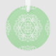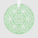 Esta mandala branca senta-se sobre um fundo verde macio. As cores são serenas e criativas. Parte da Coleção Rosenn Mandala.