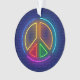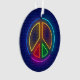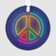 Gráfico de um símbolo de paz neon multicolorido contra um fundo de parede de tijolos