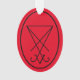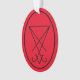 Aqui está um Enfeites de natal festivo com o suspiro de lucifer nele. O ornamento é um design oval com o suspiro de lucifer em preto no vermelho do cremson. É um ornamento legal se você quer fazer sua árvore de férias mais magia ou satânica. Também faz um belo presente de feriado para um oculista, bruxa ou satanista.