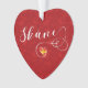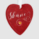 decoração/ornamento natalício com a design: bandeira de Skåne em um coração, com fonte com script.