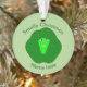 Este adorável ornamento acrílico apresenta um desenho fofo de um broto verde com grandes olhos e um sorriso. Tem folhas verdes escuras ao redor do exterior e uma dentro verde-paler.