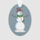 Um boneco de neve, mas arrepiante, veste um chapéu desossado vermelho e um cachecol verde nesta ilustração de vinho feita por Richard H. Fay.