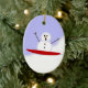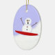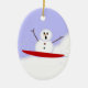 Este Snowman Ornament apresenta um boneco de neve assustado pela sua aventura de trenó descida.