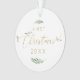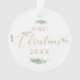 Nosso ornamento de aquarela é a recordação perfeita do seu primeiro Natal como casal casado! O lado frontal apresenta seu monograma de ouro em letras modernas de blocos e seu sobrenome centrado. Toda a design está rodeada de verde-natal e de bagas vermelhas com um confete de ouro, assim como "Sr. + Sra." O verso apresenta "Natal" na tipografia do ouro festivo e no ano. #SrESra #Keespake #PrimeiroNatal