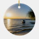Ornamento de souvenir da Flórida com uma vista por sol do Golfo de Breeze, Flórida, Estados Unidos com palmeira inclinada e um barco a vela inclinado na área da Baía de Pensacola. Procurando mais impressões ou produtos? Sinta-se livre para visitar minha loja: http://www.zazzle.com/timelessmomentsphtgy Esta foto foi tirada por Jennifer White com Fotografia Moments Eterno. Todas as imagens são protegidas por copyright © Moments Eterno Photoographic.
