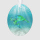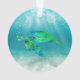 Um underwater nadador psto em perigo da tartaruga de mar verde pintado em azuis e em verdes de oceano com as bolhas de ar que flutuam para a superfície.