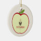 Um ó ornamento do professor da categoria que caracteriza uma ilustração da metade de uma maçã vermelha com as duas sementes na forma de um coração. O texto diz-me "(amor) terceiro grau.