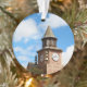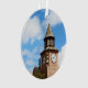Uma torre de sino na cidade de Solvang com um céu nebuloso no fundo.