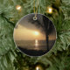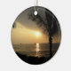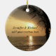 Comemore um primeiro feriado junto ou criar uma lembrança pessoal de sua lua de mel com este ornamento tropical da vista para o mar. Personalize ou suprima do texto neste ornamento do feriado com uma cena tropical do por do sol da praia, moldada por uma palmeira.