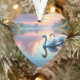 Sereno e elegante, este trabalho de arte capta um par de cisnes a deslizar graciosamente através de um lago tranquilo ao pôr do sol. Ideal para decoração inspirada na natureza ou ideias românticas de presentes.