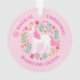 Este Enfeites de natal de unicórnio personalizado apresenta um design de unicórnio branco, bonito, com flores bonito e falso brilho. Personalize o texto com um nome.