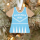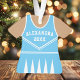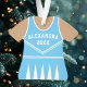 Celebre o espírito da sua chefe de torcida com este enfeite de uniforme de chefe de torcida azul e branco personalizado. Perfeito para comemorar uma temporada especial, equipe ou conquista individual. Personalize com um nome e ano para criar uma lembrança única.
