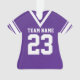 Camisa de futebol púrpura e branca com cintas brancas e número e nomes variáveis.
