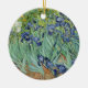 Linda pintura de irrises por Van Gough, neste ornamento encontrado. Excelente na sua árvore de Natal ou como outros usos decorativos em volta da casa, como uma ventoinha ou pendurada na parede. Faz um presente excelente para qualquer um que ama arte.