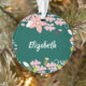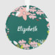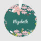 Um fundo verde escuro dispara as flores rosa ilustradas e marrom com folhas brancas e verdes. Um presente perfeito para uma senhora especial de qualquer idade!