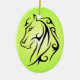 Ornamento oval com cabeça de cavalo de tinta preta, fundo verde do inclinação, símbolo do caráter chinês para o cavalo no reverso. Este é um grande presente por o ano chinês do cavalo (31 de janeiro de 2014 - 18 de fevereiro de 2015), para as pessoas que eram nascidas em um ano do cavalo, ou para amantes do cavalo em toda parte. O cavalo simboliza a ação, a liberdade, o progresso, a aventura e o romance. Espiritual, o cavalo é afortunado para muitas pessoas que incluem as pessoas do negócio e das vendas, os artistas e os executores, os atletas, os engenheiros, os viajantes e as pessoas que trabalhe com ou perto da terra. 2014 são o ano do cavalo (verde) da madeira de Yang.