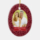 Este ornamento cerâmico dado forma oval do feriado do Natal tem um fundo colorido vermelho com lotes dos candycanes brancos e vermelhos por todo o lado no fundo. No meio, você pode personalizar a fotografia da família com seus próprios. Abaixo da foto, há uma bandeira vermelha e branca onde você possa personalizar o nome e o ano de família. Você poderia personalizar o texto para o primeiro Natal de um bebê ou mesmo nosso primeiro Natal para recentemente um casal!