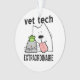 Este divertido design de ornamento técnico veterinário apresenta um feliz cão de desenho animado, gato e pássaro com texto, veterinário Extraordinaire. Você trabalhou duro para se tornar um trabalhador de assistência animal e você é bom nisso, então deixe o mundo saber! Excelente de presente para o Vet Tech favorito de seus animais de estimação, também! Design com copyright original por S. Fernleaf Designs para Blessingartanimais.