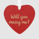 Você vai me Casado com o nome de script personalizado vermelho em ouro proposta de coração de Natal Ornament. Ouro gordo e elegante e ornamento vermelho. Noivado Romântico de Natal , proposta de casamento. Ornamento duplo.
