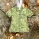 Moisés verde e amarelo. Esta matéria têxtil de flores de hibisco foi inspirada pelas camisas de aloha dos anos 1940 e dos anos 50. Estas designs vêm em várias cores.