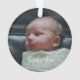 Minimalista e bonito, este ornamento personalizado de 2 fotos celebra o primeiro Natal do bebê. Apresenta uma fonte moderna e uma Árvore de Natal branca. O texto é personalizável.